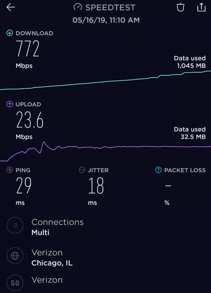 Крис Уэлч заметил, что высокая скорость работала только в непосредственной близости от тестовой станции – юзать смартфон на всей территории США ради бешеных показателей бессмысленно. Также Уэлч обратил внимание, что 5G включалась только при непосредственной загрузке файлов – все фоновые операции работали на сетях четвертого поколения.