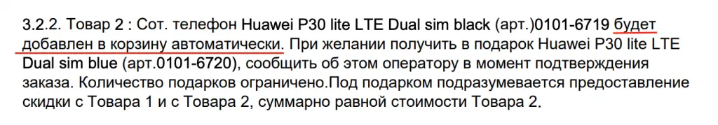 Еще раз – здесь можно купить два смартфона Huawei по цене одного. Отдельно добавлять в корзину подарочный P30 Lite не надо, это произойдет автоматически.