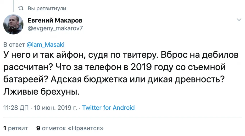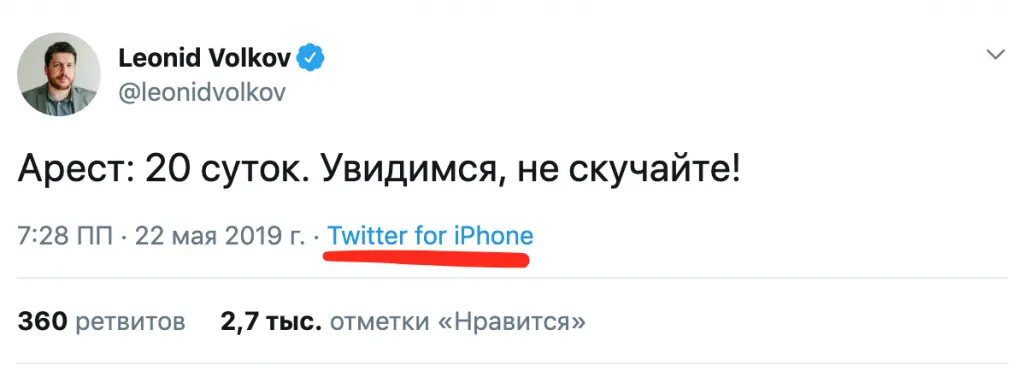 Интересно, что Волков, судя по твиттеру, пользуется айфоном.