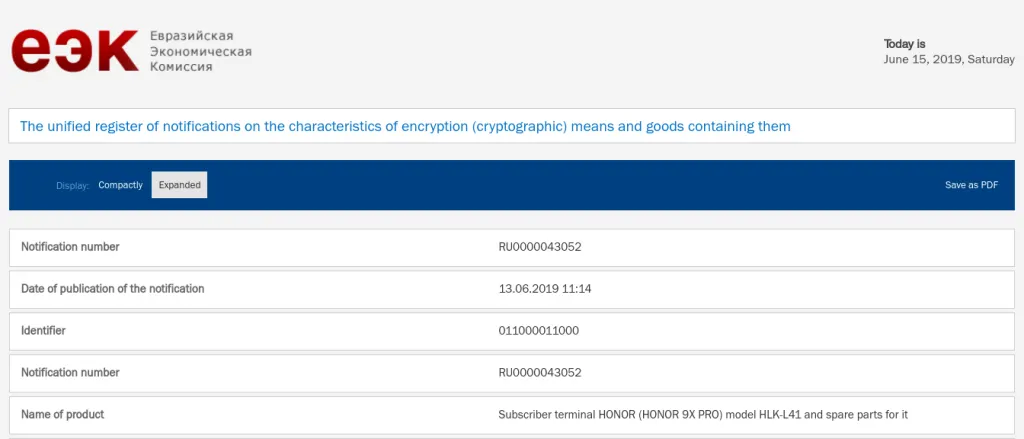 Модель была зарегистрирована 13 июня – таким образом, аппарат прошел сертификацию для продажи на территории России и стран СНГ. Ранее 9X Pro прошел сертификацию в Китае. Доподлинно известно лишь одно – Honor немного изменила нейминг, использовав Pro вместо привычного Max.