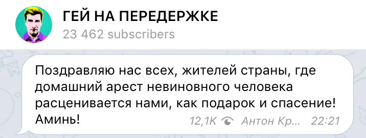Журналист и общественный деятель Антон Красовский едко подметил, что особой радости в изменении меры пресечения нет.