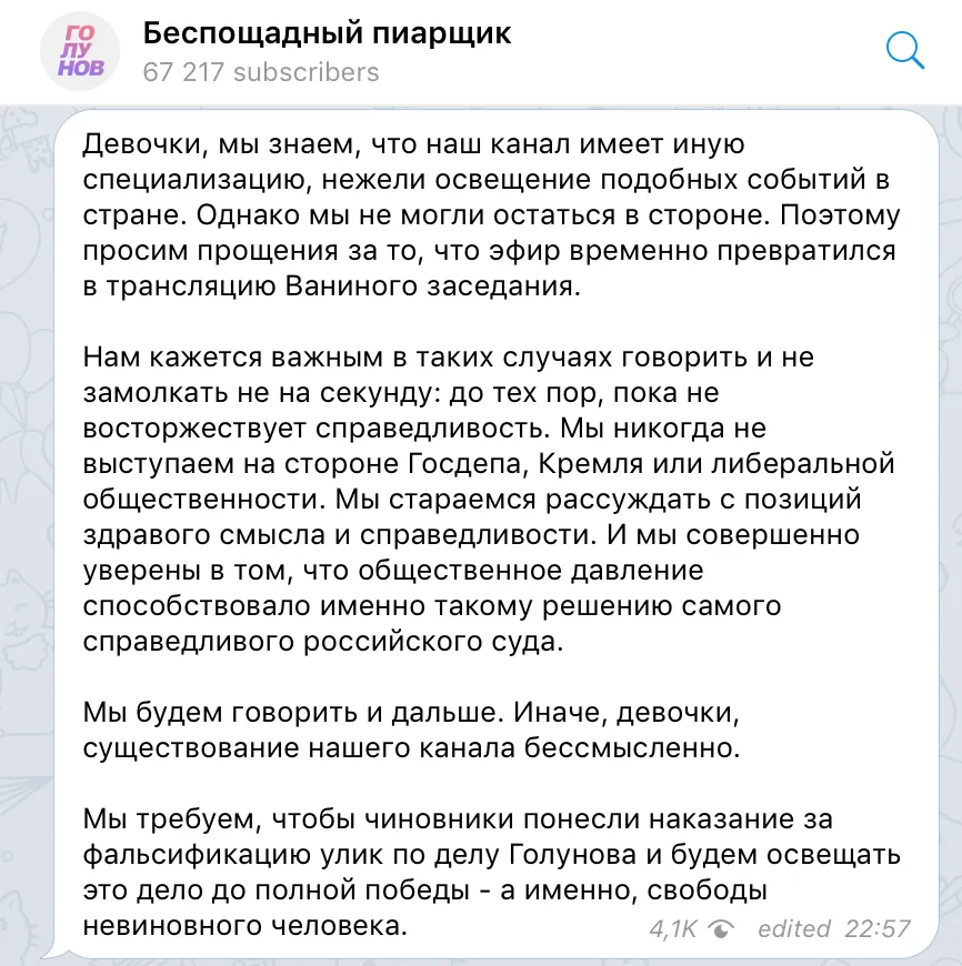 Хэштег #СвободуГолунову – в топе русского твиттера.