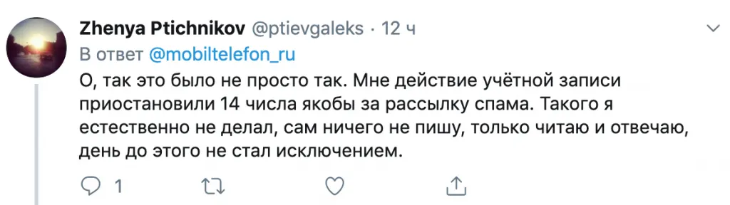 Причин для бана может быть несколько. Раз – банальное нарушение правил (например, рассылка спама). Два – регулярная чистка в Twitter – время от времени сервис пылесосит базу профилей и выключает заброшенные/подозрительные акки.