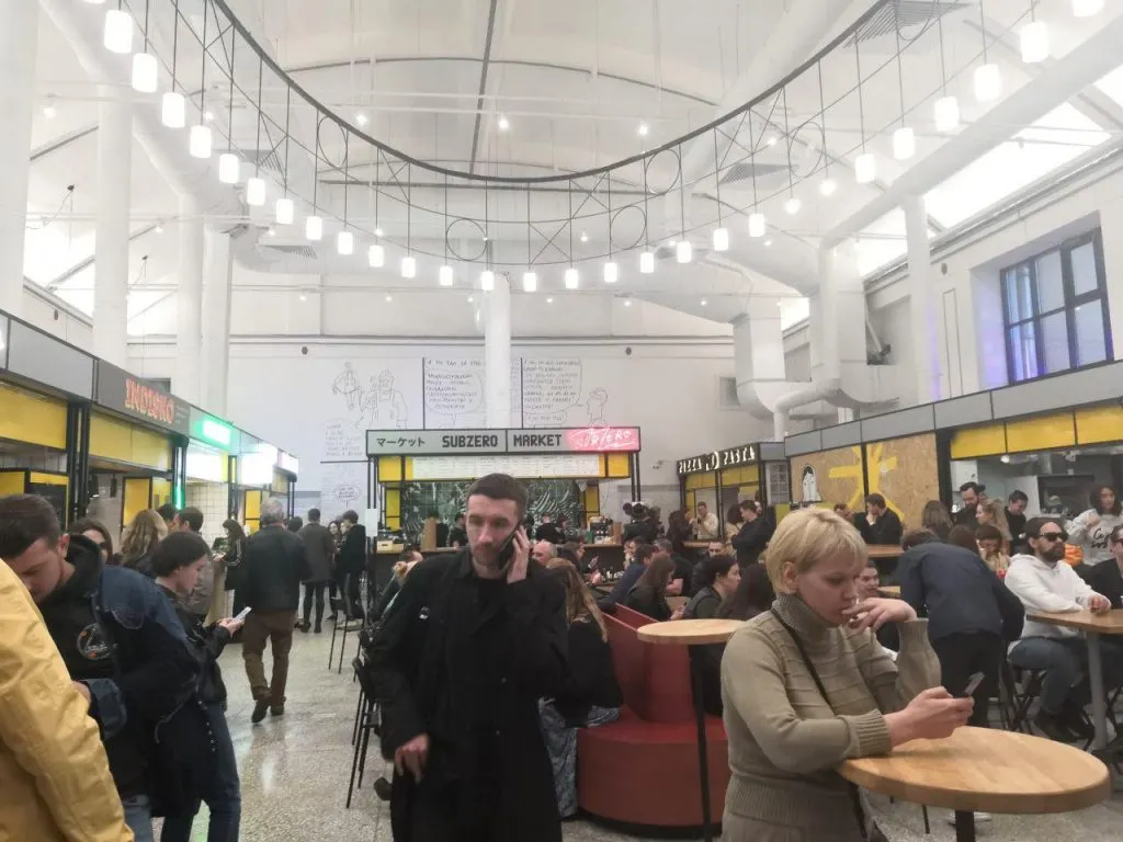 Отдельное двухэтажное помещение приняло зону «Голод» – современный дизайн, граффити от Дюрана на стене и невиданное для крупного культурного фестиваля гастрономическое разнообразие: от вьетнамских супов и мексиканских чимичанг до устриц и веганских салатиков (вместо оверпрайснутого фастфуда, как на большинстве крупных мероприятий). Это и рынком-то стыдно назвать.