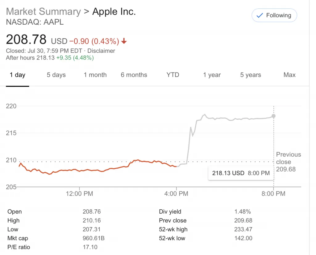 Apple опубликовала квартальный отчет, по результатам которого выручка составила 53,8 млрд долларов – на 1% больше, чем год назад, это рекорд. Рынок положительно отреагировал на финансовые итоги.