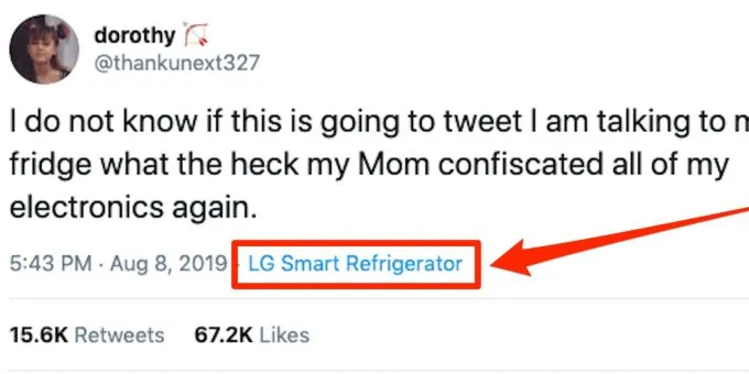 Более того, если зайти в браузер умного холодильника и запустить сайт Twitter, то любой пост будет маркироваться так, словно вы отправили его из обычного браузера.