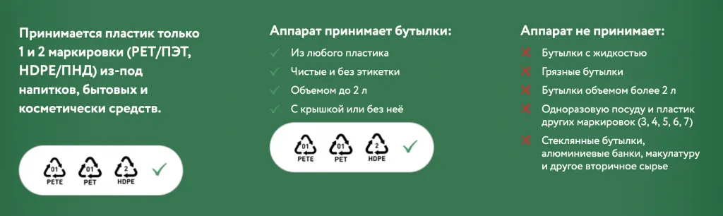Пока что фандоматы стоят в семи столичных «Перекрестках» и трех «Каруселях», в будущем проект развернут на большее число точек. Устройства принимают любую полимерную продукцию объемом до двух литров. За каждую принесенную бутылку фандомат выдаст купон со скидкой 10%.