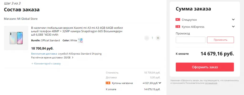 Прайс тоже стал существенным минусом — на старте за гаджет многие китайские продавцы просят жуткие 18 тысяч рублей. Но сейчас всё изменилось: Mi A3 можно приобрести на Али за 14,6 тысяч.
