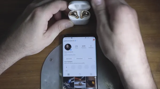 Ювелир Пабло Чимадевилья кастомизировал AirPods, заменив пластиковый корпус на золото. Все шаги мужчина записал на видео.