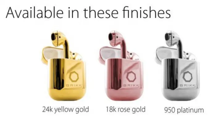 Чимадевилья назвал их AirGolds – кажется, лучшего нейминга не придумаешь. Ювелир не первый, кто превращал популярную гарнитуру в роскошный аксессуар: например, компания Brikk предлагает купить «эйрподсы» из золота 18К и 24К и платины. Стоимость гарнитуры стартует от 4995 долларов.