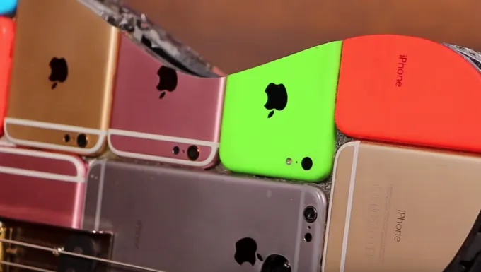Москвич уложил айфоны в три ряда, склеив устройства между собой. Лишние части он отпилил болгаркой и прикрепил получившуюся болванку к деревянной деке.
