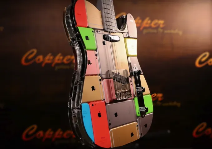 Видеоблогер из Москвы Артем Майер изготовил гитару из айфонов. На эксклюзивный музыкальный инструмент ушло 107 старых iPhone и iPod.
