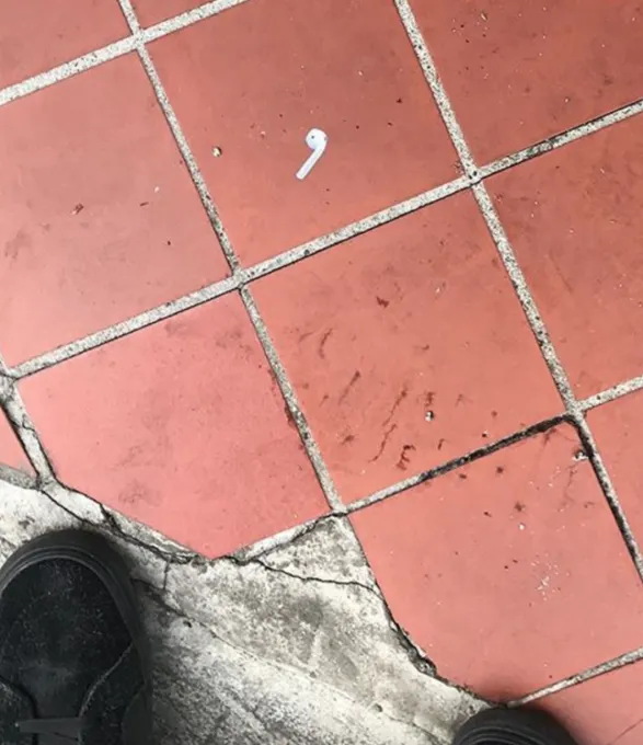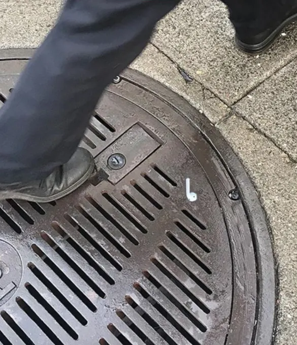 Стикеры крепились в местах обитания потерянных «эйрподс» – на тротуарах, крышках канализационных люков, на полу в общественном транспорте и прочих локациях.