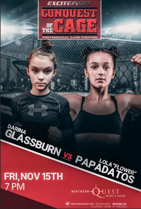 15 ноября в Вашингтоне пройдет турнир по смешанным единоборствам Conquest of the Cage. Одним из поединков вечера станет бой между 12-летними девочками – Дариной Глассберн и Лолой Попадатос.