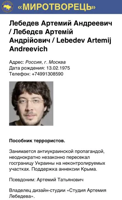 Если это не троллинг (как история с трансфером в Европу), то Лебедеву, видимо, разрешили въехать на территорию соседней страны. Напомним, что несколько лет назад Артемия включили в список «Миротворца» (профайл до сих пор доступен на сайте) и объявили персоной нон-грата на Украине. Тёму заблокировали за «антиукраинскую пропаганду» и посещение «оккупированного» Крыма.