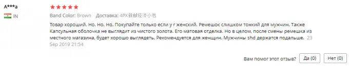 Однако практически все отзывы положительные. Единственное, на что жалуются покупатели — материал застежки, которая внезапно изготовлена не из чистого золота. Хотя довольно странно ожидать драгоценный металл, учитывая стоимость товара.