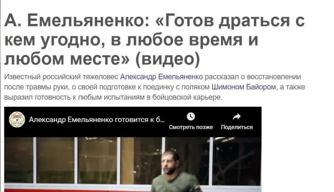 Емельяненко со своей стороны заявил, что вызывает любого на бой, что бить людей – это его работа. Поэтому хочется, чтобы Александр нашел в себе смелость и выступил по правилам бокса».