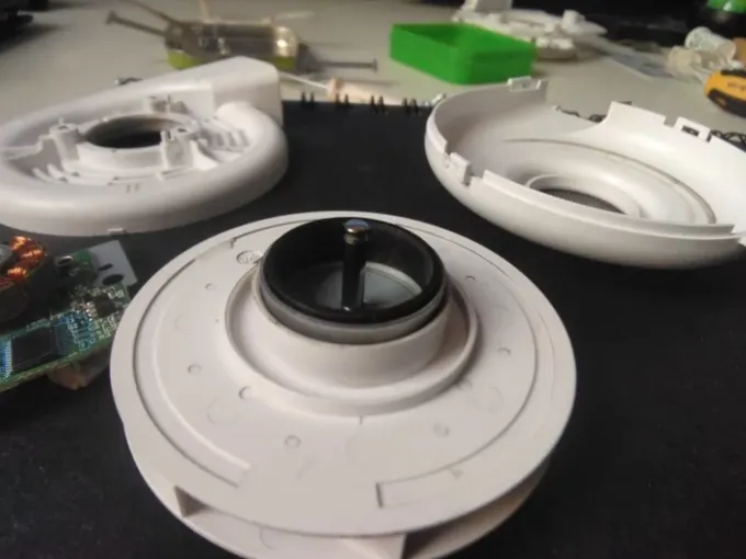 Разобрав аппарат, юзер выяснил, что вентилятор с годами сточил стопорное кольцо. Из-за этого механизм касался краёв и медленно сжигал пластик. При этом @kinddude заметил, что пылесос в сервисе вообще не разбирали.