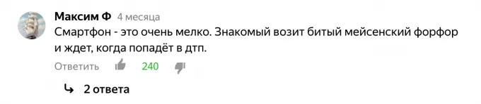 Кстати, у автора «За рулём» была своя версия, зачем водители возят в машине разбитый смарт: «остановит их инспектор ГИБДД, а они ему – не мог я пользоваться телефоном, потому что он у меня не работает».
