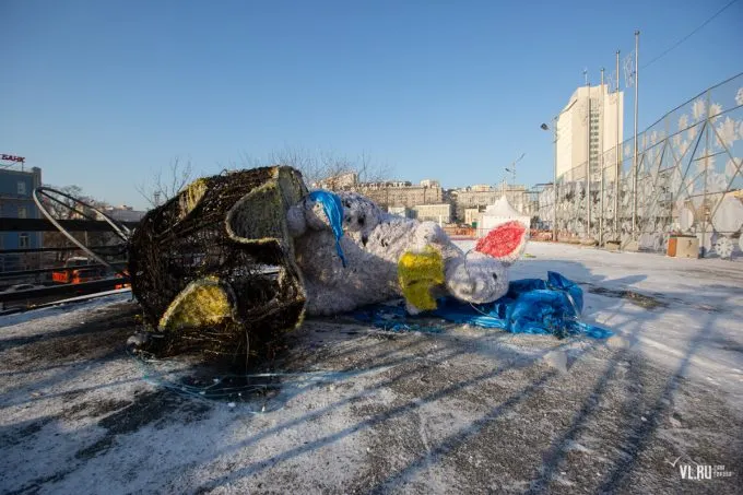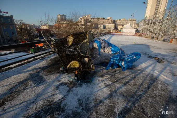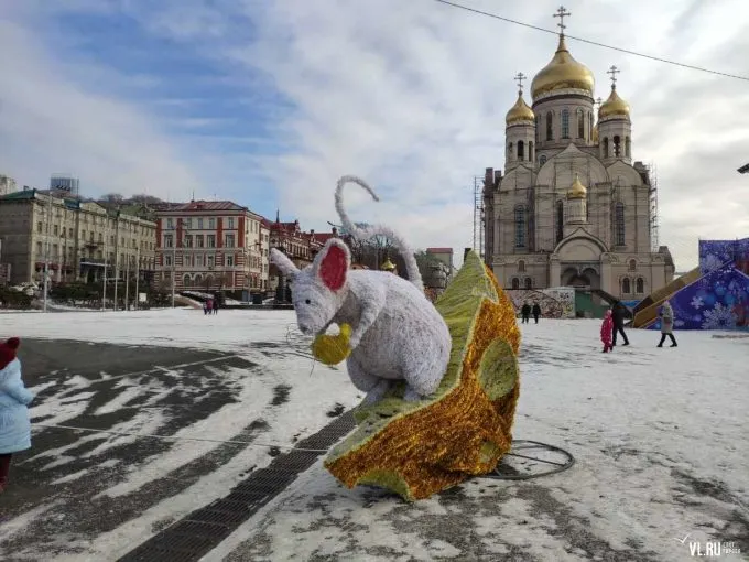 В центре Владивостока спалили огромную фигуру мыши. Она продержалась меньше недели и была сожжена неизвестным прямо в новогоднюю ночь.