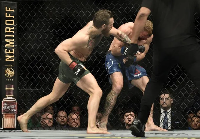 В Лас-Вегасе прошел первый бой Конора Макгрегора почти за полтора года. Ирландец дебютировал в полусреднем весе поединком против Дональда Серроне.