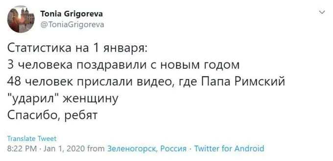 А кто-то пошутил, что в бессобытийный день 1 января абьюзер-папа римский стал главным инфоповодом.