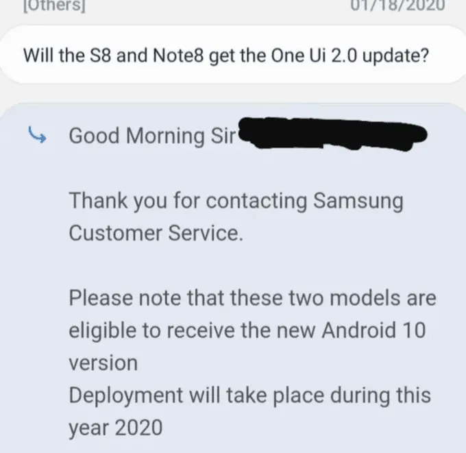 Пользователь задал вопрос, получат ли Galaxy S8 и Galaxy Note 8 долгожданный Android 10. В техподдержке пообещали, что «десятка» доедет и до не самых свежих девайсов. Это хорошая новость.