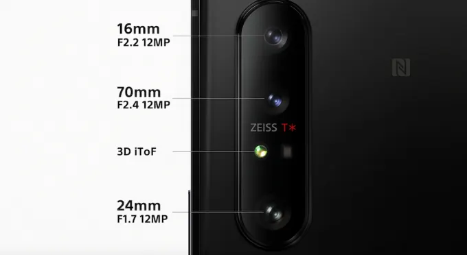 Камера имеет такой же сетап, как и у Xperia 1 (12+12+12 мегапикселей), но производитель обещает сенсоры большего размера и ускоренную производительность. Четвёртым объективом выступает сенсор ToF 3D разрешением 0,3 мегапикселей.