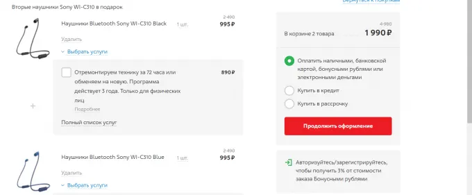 Гарнитуру Sony распродают в «М.Видео» с жирнейшей скидкой. Как урвать две пары по цене одной?