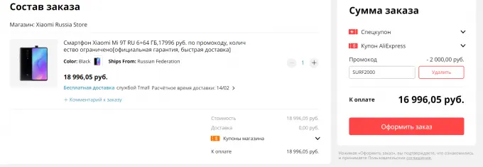 Как купить Mi 9T по акционной цене? Изи: при оформлении заказа введите в специальном окошке промокод SURF2000 — он скинет дополнительные 2000 рублей. Так что бегите по линку и забирайте свой Xiaomi, пока не поздно.