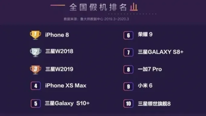 Самым подделываемым с марта 2019 года гаджетом оказался iPhone 8 (цифр нет, просто верьте). На втором месте оказалась раскладушка Samsung W2018 – оказывается, этот премиальный аппарат очень любят потребители. На третье место (вы не поверите) попал Samsung W2019 – ещё один раскладной смарт от корейской компании.