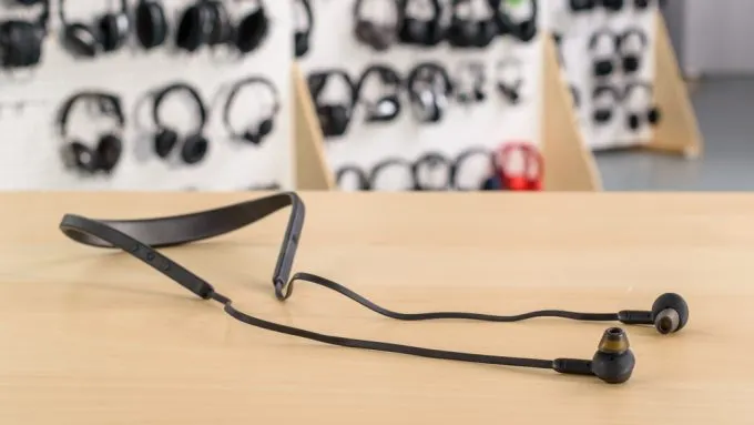 Elite 25e получила шнур и ободок, в котором спрятаны аккумулятор и элементы управления. Именно благодаря массивному ободку, который во время носки можно спрятать под одеждой, автономность гарнитуры составляет рекордные 18 часов.