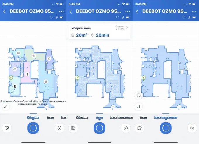 2. Уборка области: в приложении вы выбираете комнаты, в которых нужно убрать, и даже определяете порядок уборки.