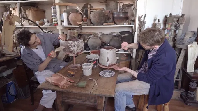 В самом начале видео нам объявили, что они едут в Вологду, чтобы увидеть художника Ивана Беляева, который занимается гончарным делом в японском стиле. Зачем это нужно? Наверное, чтобы Дудь не просто разговаривал со знаменитостями, но и открывал для зрителей какие-нибудь красоты России и крутых ноунеймов. Отдельно от основного выпуска такой контент бы вряд ли собрал просмотры, а показать-то хочется.
