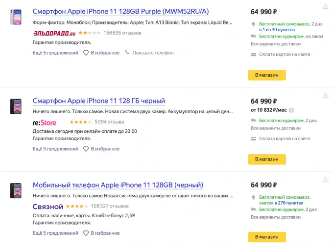При этом на Маркете неофициальные дилеры торгуют iPhone 11 по 58-59 тысяч рублей. То есть при переплате в пару тысяч вы получаете не только гарантировано «белый» аппарат, но и нормальную быструю доставку (салон МТС наверняка есть почти в любом городе России).