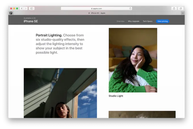 Важная деталь – SE не имеет защитного механизма Face ID и модуля TrueDepth, однако с его простенькой 7-мегапиксельной фронталкой умеет снимать качественные портреты. То есть крутой фотомодуль, как в iPhone XS или 11 Pro, не нужен – размытие фона и имитацию студийного света выполняют алгоритмы.