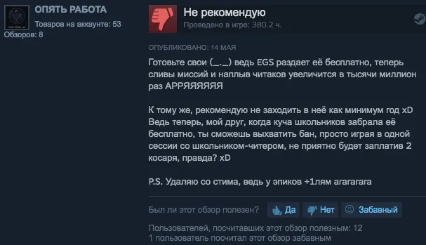 Бедный Стим, там прям вечная перепись долбоебов 24/7