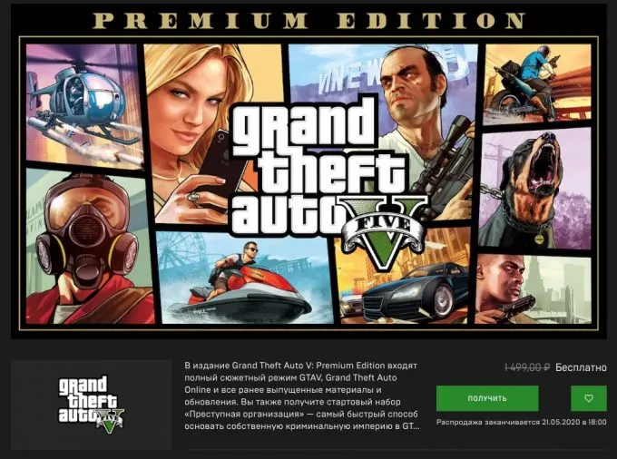 14 мая компания Epic Games, имеющая одноименный магазин, выложила для бесплатного использования культовую игру Grand Theft Auto V. Приключенческий боевик можно скачать себе на ПК до 21 мая и играть совершенно бесплатно.