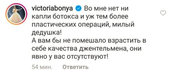 Судя по всему, Бониту это крепко задело. Вместо того, чтобы предоставить Юрию Николаевичу что-то похожее на аргументы в пользу своей теории заговора, она зацепилась только за часть про ботокс.