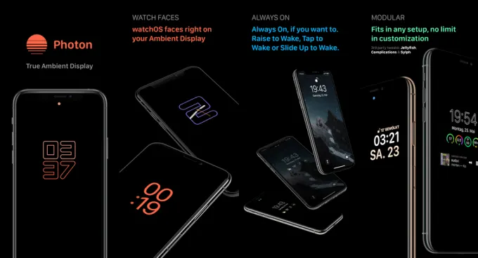 Один из главных релизов — апп под названием Photon, который активирует на iPhone долгожданную функцию Always On Display. При блокировке устройства Photon отображает на экране часы, индикаторы уведомлений и даже виджет активности с Apple Watch.