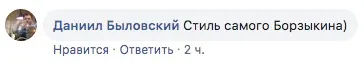 Сначала журналист газеты «Спорт-Экспресс» Игорь Рабинер написал в фейсбуке большой пост, где заявил, что не считает Борзыкина журналистом. Игорь, который в опросе Егорова как раз попал на Михаила, припомнил алкогольные залеты оппонента, спорные высказывание и даже умеренный фашизм, из-за которого блогер вылетел с предыдущего места работы. «Он ведь, главное, и за слова свои не отвечает — когда обливал меня грязью во время запоев, протрезвев, писал письма с извинениями», — такими словами Рабинер объяснил свое право наезжать на Михаила.