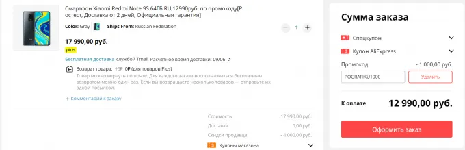 К тому же аппарат снова подешевел. Заметили, что сейчас на площадке Tmall устройство можно взять всего за 12 990 рублей с учётом промокода POGRAFIKU1000. Плюс у этого предложения есть куча преимуществ: лучшая цена за всё время, официальная гарантия и быстрая доставка до двери. При этом другие ритейлеры по типу «Связного» продают аппарат за 18 тысяч — очевидно, что выгоднее брать смарт на Tmall.