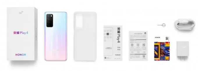Honor Play 4 имеет 6,81-дюймовый ЖК-дисплей разрешением 1080 x 2400 пикселей, чип MediaTek Dimensity 800, 8/128 Гбайт памяти. На задней панели устройства расположена квадрокамера разрешением 8, 64, 2 и 2 мегапикселей, умеющая записывать 4К-видео с частотой 30 fps.