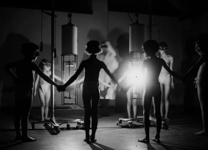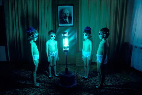 Также это может быть облучением УФ-лампами из-за недостатка солнечного света (процедуру часто все равно называли кварцеванием). Дети находятся в очках, чтобы не повредить зрение.