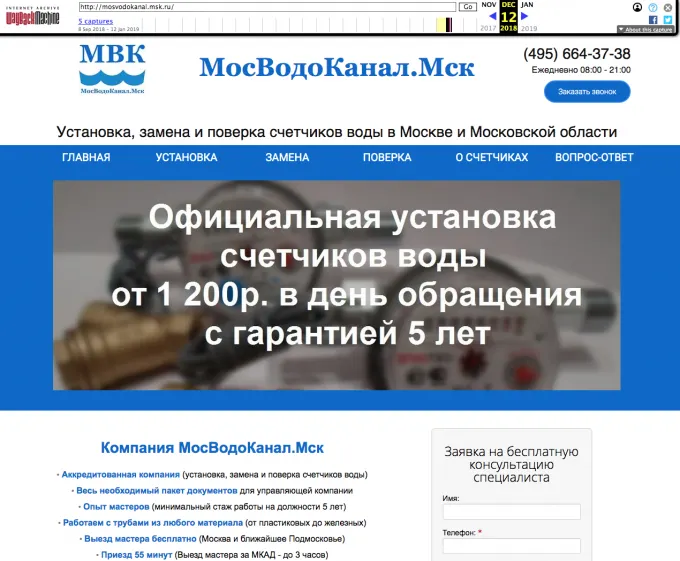 Сайт МосВодоКанал.Мск. Источник — данные web.archive.org от декабря 2018 года.