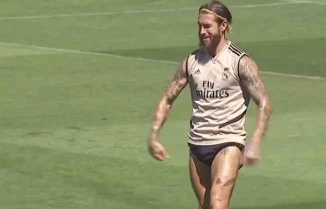 Защитник «Реала» и сборной Испании Серхио Рамос покуражился. На тренировке мужчина залепил гол в девятку и, заметив, что его снимают, передал привет бойцу Конору Макгрегору.