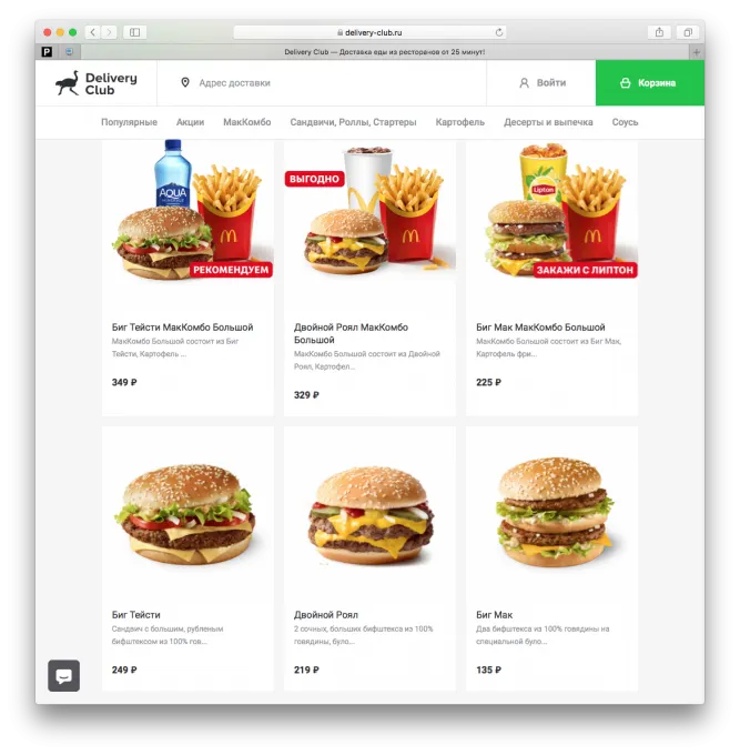 В-третьих, скидка на три заказа в месяц в «Макдоналдсе» размером 10% через Delivery Club. При этом подписчик Combo имеет в «Макдаке» повышенную 20-процентную скидку, так как суммируются базовый бонусы пользователя DC! Например, можно три раза за месяц заказать Большой МакКомбо с Биг Тейсти за 280 вместо 350 рублей.