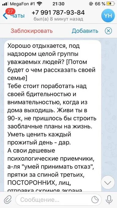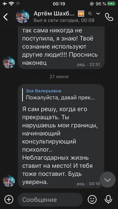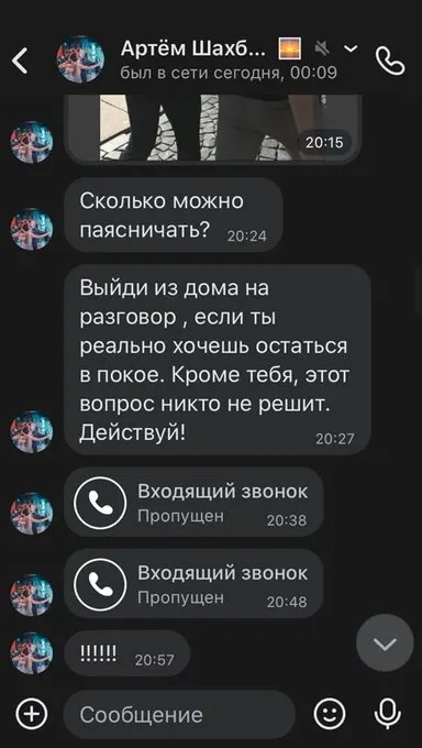 В чем суть? Полгода назад девушка из Санкт-Петербурга по имени Зоя познакомилась с парнем по имени Артем (Гатем) Шахбазов, поняла, что он ей не подходит, и тактично его отшила. Вместо того, чтобы спокойно принять отказ, он начал написывать Зое в личку – причем не с романтическими просьбами не расставаться, а с реальными угрозами.
