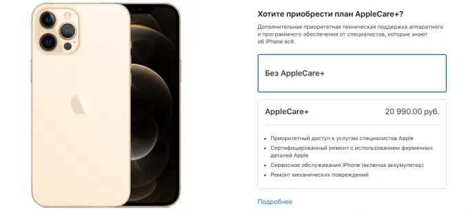 Для сравнения, пакет AppleCare+ для iPhone 12 mini обойдется в 14 990 рублей. Расширенная гарантия для 12 Pro Max стоит 20 990 рублей.
