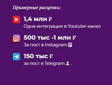 Например, Ксения Собчак берет за одну интеграцию 1,4 млн рублей. Да, просмотров у нее больше, но разница все же не должна быть такой существенной.
